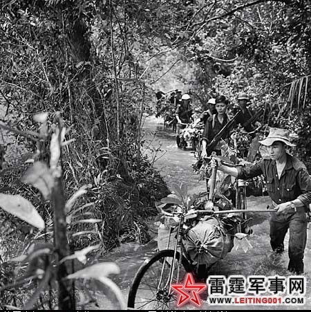 在柬越边境胡志明小道的越共游击队单车补给队(1966)