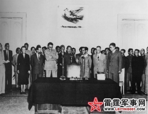 调查在朝鲜和中国的细菌战事实国际科学委员会报告签字仪式在北京举行。报告结论认为美国在朝鲜和中国东北地区使用了细菌武器。
