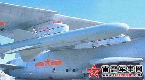 在飞行控制、火控和武器系统方面,603所正确处理了对空攻击、自卫与对地、海攻击的关系,以对地、海攻击为主;高空特性与低空特性的关系,以低空突防为主。并解决了一系列的重大技术关键,使歼轰-7飞机的综合作战能力大大提高。最终定型的歼轰-7,对比以往的空军作战飞机,具有很多优点。下图为飞豹携带鹰击1超音速冲压空舰导弹的风洞模型。